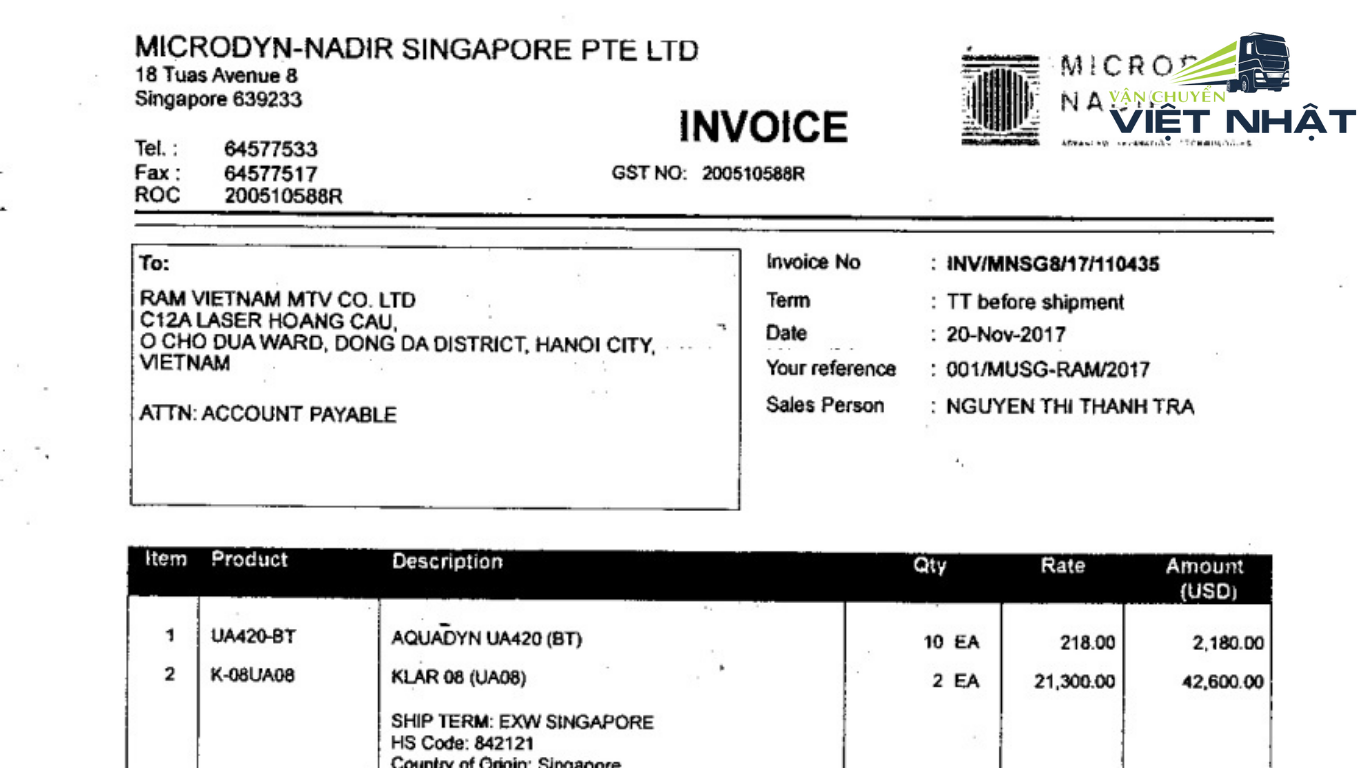 Đây là chứng từ thể hiện giao dịch mua bán minh bạch. Hóa đơn cần có đầy đủ: thông tin bên bán – bên mua, mô tả hàng hóa, số lượng, đơn giá và tổng giá trị. Hải quan Việt Nam sẽ dựa vào hóa đơn để tính thuế nhập khẩu và xác định tính hợp pháp của lô hàng.